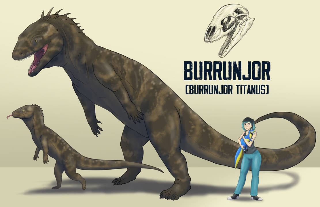 Burrunjor, also known as Bunnasur, was a well-known Australian dinosaur-like cryptid (Cryptids are creatures that people claim to have found, but there is no evidence that they actually exist). This Burrunjor is thought to have been a predatory dinosaur that walked on two legs like the Theropods and Megaraptorids and had arms that were smaller than the legs.
